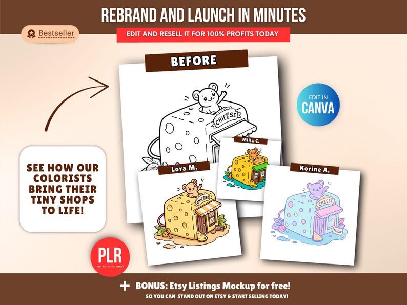 Crear libros para colorear únicos y competitivos solía requerir semanas de trabajo, desde el diseño de cada página hasta la optimización del producto para destacar en el mercado. Con esta plantilla editable de Canva de 150 páginas inspirada en “Tiny Shops”, ese proceso se simplifica por completo, permitiéndote lanzar productos profesionales en cuestión de minutos.